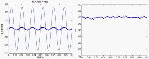 图6输入a相电压和电流稳态波形图7输出直流电压稳态波形