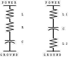 这里V为最大噪声电压尖峰值,△t为瞬态持续时间,△I为器件瞬态电流,△t、△I值可以从器件手册中查得。例如74HC的瞬态电流典型值Icc为20mA,输出信号从零上升到Icc或者从Icc下降到零需要的时间为4ns,如果现在我们试图控制感性噪声的尖峰在100mV以内,那么由上面的公式我们可以求得串联电感L的最大值不超过20nH。在PCB板设计时,设计者可以通过以下几种方式来降低回路电感:选择寄生电感比较小的电容,降低ESL(不同型号电容的寄生电感值见表1);尽量使用贴片电容以减小电容引线长,降低Ll值;合理的放置电容,使用电源层或地平面层代替电源或者地传输线,减小电源地传输线电感Lpc;合理选择集成器件的封装,以降低Lic值,比如对于器件ADV478来说,PLCC封装的寄生电感比DIP封装的寄生电感要小2nH到3nH。
