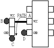 如图8(b)所示,将过孔B放在电容电源管脚和芯片电源管脚之间,这样将增加通路A的环路电感,当电容和芯片不是位于同一层时,一般采用这种方式。