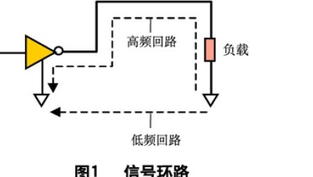 对低频信号,要使电流流经电阻最小的路径;对高频信号,要使高频电流流经电感最小的路径,而非电阻最小的路径(见图1)。对于差模辐射,EMI辐射强度(E)正比于电流、电流环路的面积以及频率的平方。(其中I是电流、A是环路面积、f是频率、r是到环路中心的距离,k为常数。)
