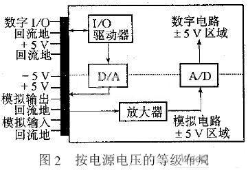一般说来电源电压不同,电路的种类往往不同。例如,数字电路用5v的较多,模拟电路中运算放大器等用12v、15v较多;若用同种电源电压的电路中仍有数字与模拟元器件之分,还可以再分组。不同的电源电压的等级布局如图2所示。