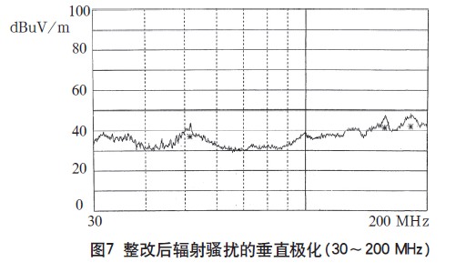 由测试结果可以看出,通过电磁兼容设计在传导骚扰抑制方面取得了良好效果,在高频段辐射骚扰的设计也达到了预期效果,下面还需对在30~200MHz频段范围内的辐射骚扰进行改进设计。