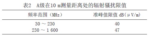根据铁路客运专线标准规定,传导骚扰限值和辐射骚扰限值如表1、2所示。