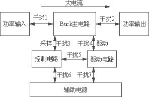 以下结合Buck变换器来具体讨论电磁干扰产生的原因和条件,从而找出抑制和消除的方法。图1是Buck变换器的原理结构图。