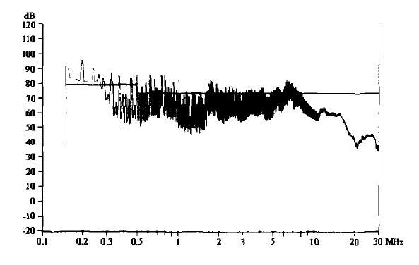 图6进线电抗器+EMI滤波器后所测的传导骚扰