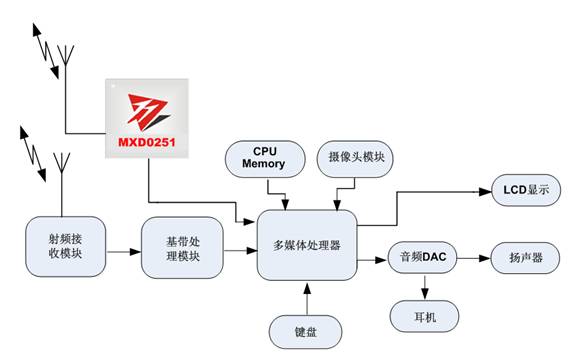 图1:基于MXD0251的CMMB移动数字电视终端系统架构。