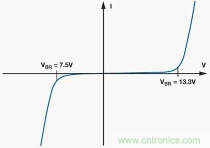 重要的是要确保TVS的击穿电压在受?;ひ诺恼9ぷ鞣段е?。CDSOT23-SM712的独有特性是具有+13.3 V和–7.5 V的非对称击穿电压,与+12 V至–7 V的收发器共模范围相匹配,从而提供最佳保护,同时最大程度减小对ADM3485E RS-485收发器的过压应力。