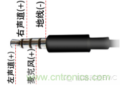 2、耳机采用的是苹果标准接口,苹果耳机接口图如下,从图中可以看出HP_MIC在耳机母座最外面一个脚,金属弹片正好裸露在外面,极易受静电影响。