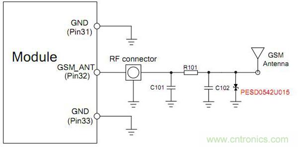 对于天线的高频信号?;?,可以采用0402或0201的超低电容 ESD器件PESD0542U015,可以节约布板空间,且因为0.05PF的电容,可以保证高频、高速信号的完整传输。