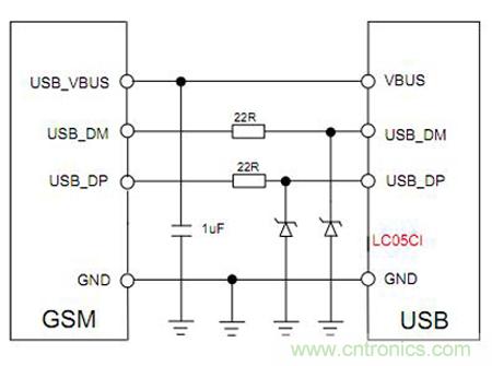 此??閁SB经常用来配置数据,插拔容易被静电损坏,本方案可以采用分立器件或者集成器件,但要确保选择的器件结电容小于3PF。