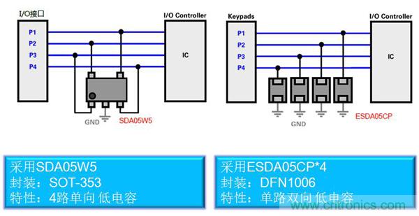 对于普通的IO口的静电防护,因为其速率较低,采用普通的TVS器件即可满足8KV的防护需求。