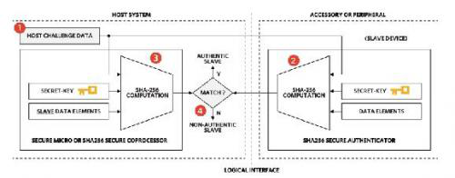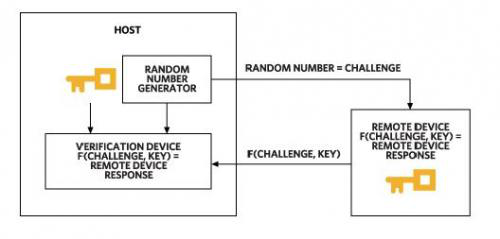 图1. 基于对称加密的安全认证依赖于主机和设备之间的共享密钥。