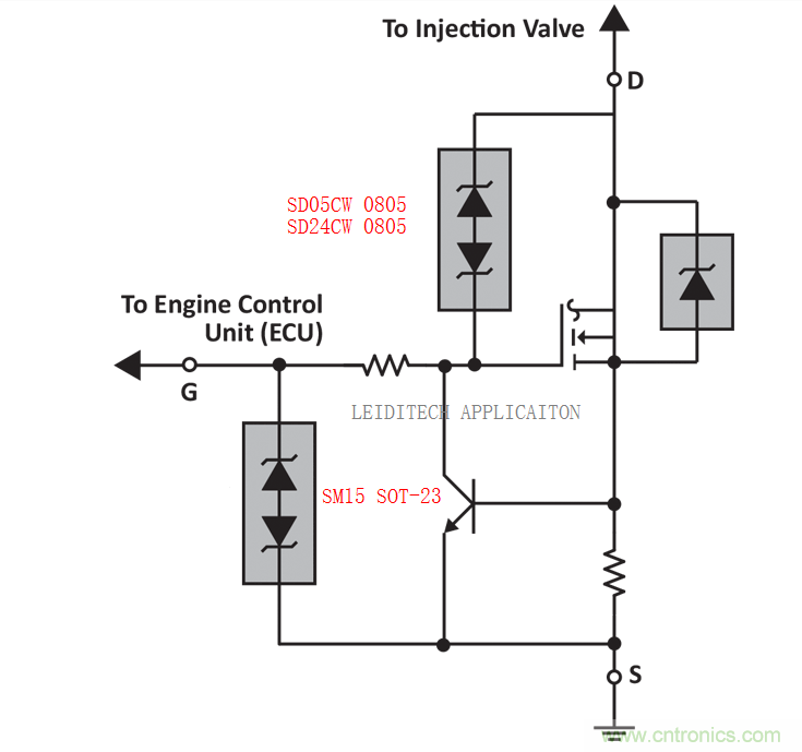 【导读】leiditech开发了广泛的汽车电子系统的?;そ饩龇桨?。 一个典型的汽车应用有几个电路和接口,易受ESD,EFT和其他抛负载的影响。