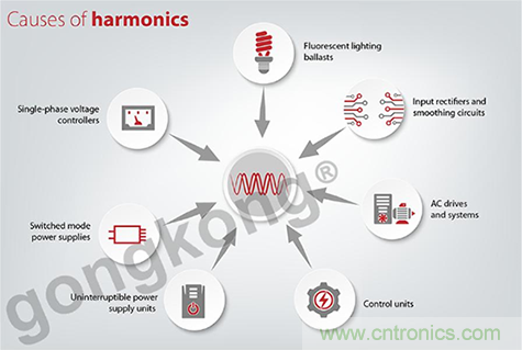 变频器中使用的经典整流器会产生高达50次(2.5 kHz)的谐波。谐波会在电网中产生相关的问题,但变频器的普及,这个频段已经被EN 61000-3-4和3-2等标准所覆盖。
