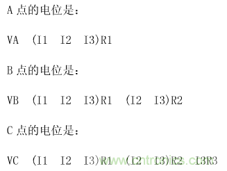 从公式中可以看出,A、B、C各点的电位是受电路工作电流影响的,随各电路的地线电流而变化。尤其是C点的电位,十分不稳定。