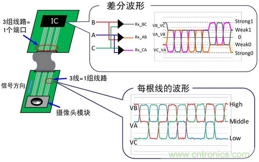 一般差分传输线D-PHY的1组线路由2根引线构成,C-PHY则是1组线程则由3根引线构成的复杂的差分传输线。