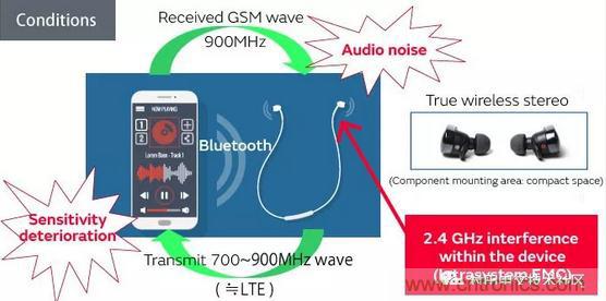 耳机中存在安装区域限制,例如真正的无线耳机,左侧和右侧是分开的,如图1所示。验证耳机设备内干扰的对策。