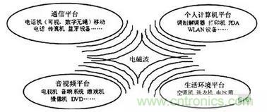 一些过去不具备联网能力的电子设备,比如:电视、电冰箱、洗衣机、卫星机顶盒等家用设备和电器,成为家庭网络的新成员,并接入网络,使网络配置更加复杂,设备间的电磁兼容性也变得更复杂(见图1)。另外,家庭网络将与现有通信网,供电网等共同形成新的电磁环境,不同网络间的相互影响因素也更纷繁(见图2)。