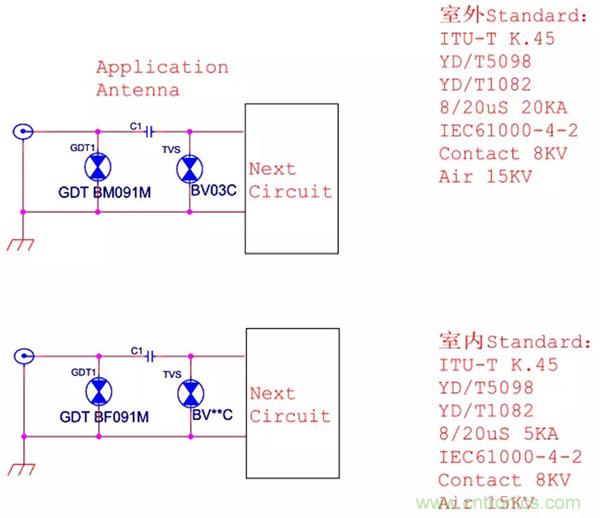 27、室内外天馈浪涌设计标准电路