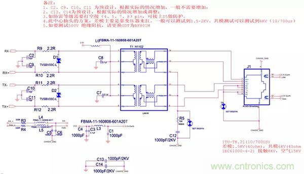 30、以太网EMC(浪涌)设计标准电路(差模要求较高方案)