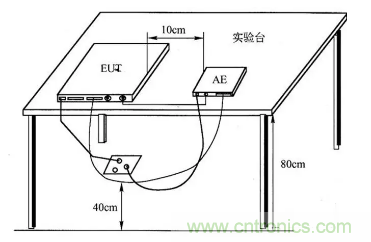 (2)被测设备置于金属平面上,同金属平面绝缘间隔10cm左右;接模拟负载或者暗室外端口的线缆应该注意其同金属平面的绝缘性;