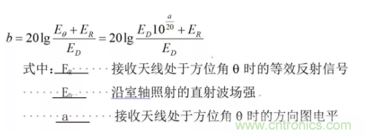 将接收天线转到比最大电平低a(dB)的方位角q时,则所接收的直射信号Eq=ED10a/20。当反射信号与直射信号同相时合成场最大,这时以b表示: