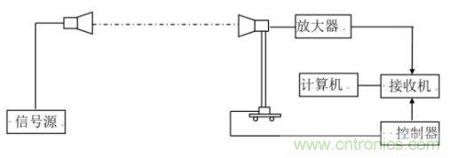 设置信号源频率为1GHz,输出功率调至合适大小使发射天线辐射信号,接收天线在正对发射天线方向,沿待测行程线移动,并记录接收信号曲线;