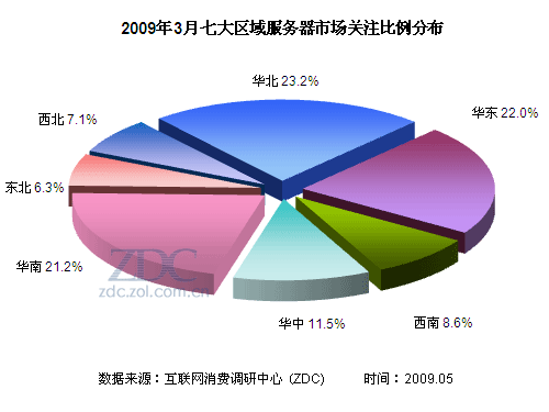 服务器市场的七大区域市场关注比例分布也是根据区域经济的发展程度来一一对应的,华北、华东、华南三大经济发达区域的服务器市场也是重点关注区域,基本上属于平分秋色,华北占比23.2%,华东和华南分别是22.0%和21.2%。由于服务器产品的使用大部分在商用范围内,个人家庭用户几乎不涉及服务器的使用,因此商用用户的多少,对于服务器的性能要求的高低等都和区域内的经济发达程度有关,华中、西南、西北、东北等区域由于自身条件的限制,服务器关注度较低,大部分在10%以下。