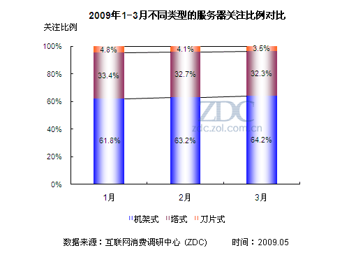 (图)2009年1-3月不同类型的服务器关注比例对比