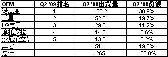 下图所示为iSuppli公司对于第二季度五大手机OEM厂商出货量排名的初步估计。