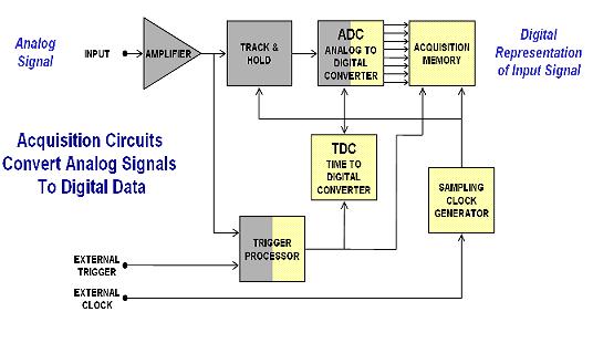 捕获部分主要是由三颗芯片和一个电路组成,即放大器芯片,A/D芯片,存储器芯片和触发器电路,原理框图如下图2所示。被测信号首先经过探头和放大器及归一化后转换成ADC可以接收的电压范围,采样和保持电路按固定采样率将信号分割成一个个独立的采样电平,ADC将这些电平转化成数字的采样点,这些数字采样点保存在采集存储器里送显示和测量分析处理。