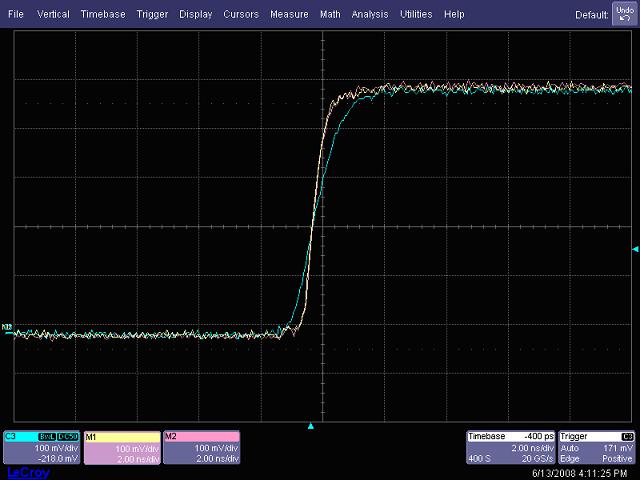 基于上面的原则,我们就很好理解为什么有些客户会用6GHz的示波器测试100MHz的时钟,但又用6GHz的示波器测试3.125Gbps的XAUI信号。 请大家忘记所谓的3-5倍这个关系,太不严谨的表达了!