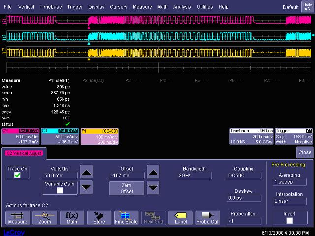 图17,3GHz带宽时测试USB2.0 high speed信号的上升时间