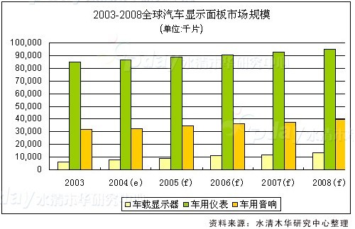 汽车信息系统的复杂性和信息密度在日益上升,这使得汽车内部显示器不再仅仅是基本的集中仪表显示,而是要满足越来越详细和多样化的车内信息显示需求。车载显示器市场按应用分为车载导航装置、车载电视,以及车载信息系统;按装配时间分为原装和后装两个市场。原装市场需要经过严格的认证,进入较难;后配市场则不需认证,是目前最大的市场,约是原装市场的20倍。未来随着汽车导航系统等成为汽车标配,新车配备显示器的比例即原装市场的比例会逐步提升。
