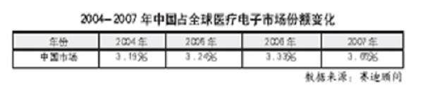图二:2004~2007年我国占全球医疗电子市场份额的变化