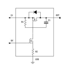 电压上升的斜率有几种:由工厂设定几种斜率(启动时间不同),供用户选择;由用户在器件外设一电容,设定其启动时间。为了快速关断开关,在负载开关中设有关断时输出有放电电路,如图5所示。在负载开关关断时,N-MOSFET导通,电容往N管放电,加速关断时间。