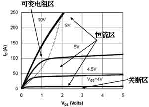 - 功率MOSFET动态经过是关断区、恒流区和可变电阻区