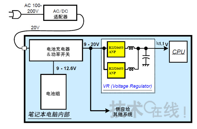 - 笔记本电脑的MPU和内存等的电压稳压器