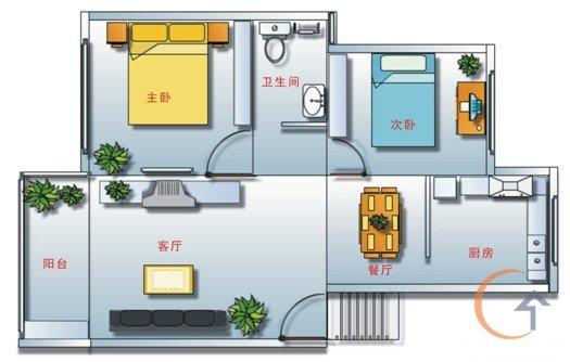 本项目为一套2室2厅,室内建筑格局为:客厅、餐厅、厨房、次卧、主卧、卫生间、阳台,如图1所示: