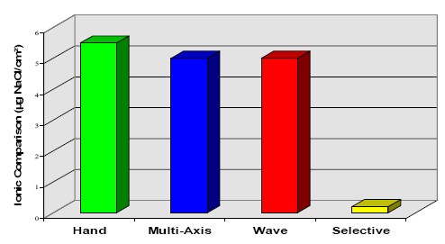 选择焊只是针对所需要焊接的点进行助焊剂的选择性喷涂,线路板的清洁度因此大大提高,离子污染量大大降低。助焊剂中的NA+ 离子和CL-离子如果残留在板子上,时间一长会与空气中的水分子结合形成盐从而腐蚀线路板和焊点,最终造成焊点开路。因此,传统的生产方式往往需要对焊接完的线路板进行清洁。而选择焊则从根本上解决了这一问题。