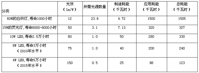 2.表中每个照明灯具提供600流明以上的光输出,所需光源的数量、耗能统计均按工作25000小时计算。