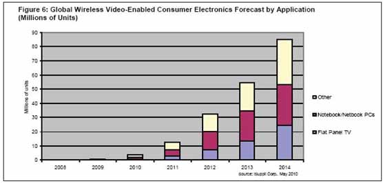 - 2014年,逾5300万个此类设备将是支持无线视频的数字电视和面向消费类上网本/笔记本