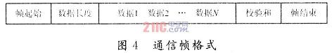 单片机与PC端的数据通信需要设计一个通信协议,采用同步通信方式进行。将通信协议分成命令帧、应答帧和数据帧三种格式。每种帧都包含有起始字节、数据长度、校验字节和帧结束字节。具体格式如图4所示。