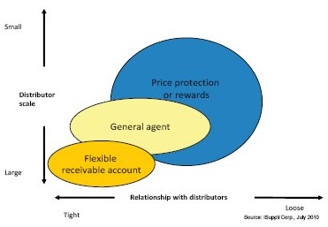 在第三种策略适合大型原厂和分销商之间的合作,原厂通过灵活的应收账款策略来和代理商伙伴共同建立库存。合作的基础是双方的财务状况都比较健康,特别是要有好的现金流。这种策略还可以加强原厂和大型分销商之间的伙伴关系。