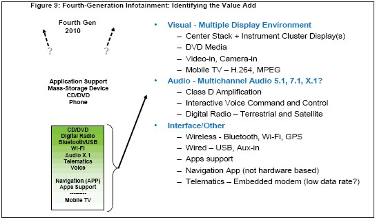 据iSuppli公司,第四代设计架构今年开始得到采用,正在改变汽车信息娱乐领域的供应与消费模式,消费者对汽车电子的影响力比以前更大。