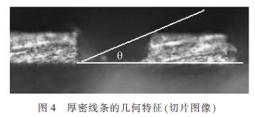从图4可以看到,线条高度/线距比例已接近1/2。即,则角度为27°。当使用厚密板作为线路检查的对象时,所需的光源光线入射角度比普通光源所能提供的光线角度大得多。要想得到清晰且对比度良好的图像,必须提高光源的角度到某个合适的值,同时综合考虑基材和线路的光学特性。