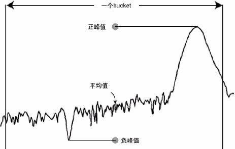 显示的迹线点通常称为“bucket”。频谱分析仪进行数据点采样的时间称为“bucket间隔”。图2显示了选择不同检波类型会对给定bucket的显示迹线点产生什么影响。