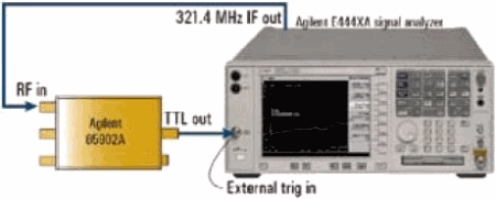 图6PSA与Agilent85902A猝发载波触发(BCT)集成的外部配置在没有外部触发源的情况下,可使用外部猝发载波触发附件进行可靠的触发,实现对WiMAX信号的稳定测量。图6显示了PSA频谱分析仪与Agilent85092A猝发载波触发(BCT)的集成。在对稳定的射频猝发脉冲流进行检波时,BCT会对要分析的射频输入信号进行采样,并提供与猝发脉冲同步的TTL输出信号以及一个LED状态指标。
