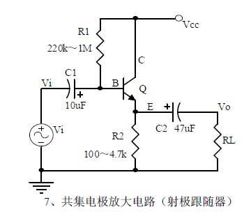 [page]1、元器件的作用、电路的用途、电压放大倍数、输入和输出的信号电压相位关系、交流和直流等效电路图。电路的输入和输出阻抗