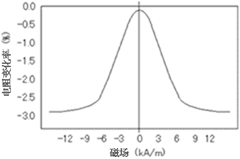 AMR单体是用镍和铁等制成的强磁性金属合金。一般采用硅(Si)制成,当遇到施加的电流方向垂直的磁场时,阻抗值发生变化。这个现象就称为磁阻效应,特性如图1所示。它以0(零)H为轴,正负两侧对称的特性,因此是不区别磁铁的N极和S极的两极检测。